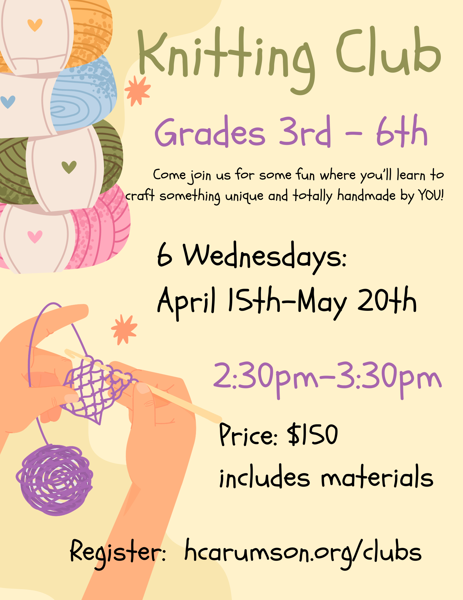 Spring 2026 clubs will start the week of April 13 and run for 6 consecutive weeks.